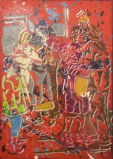 Titre: Les embrassades (retrouvailles d’une famille après la chute du mur de Berlin)